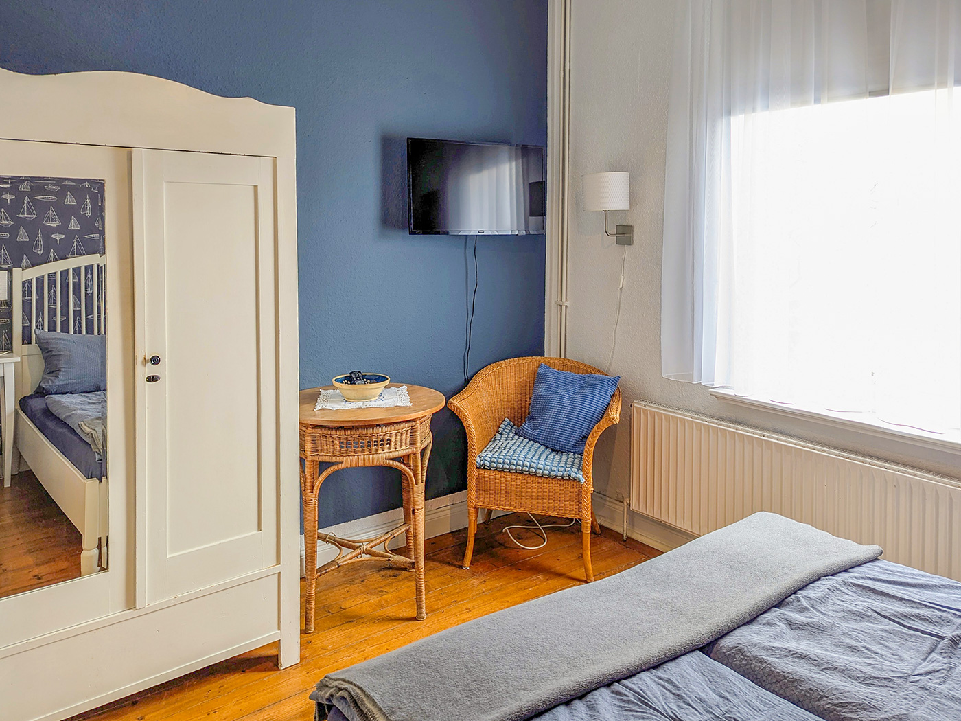 In unserer Selbstversorger-Pension (Pension mit Küchenbenutzung) bieten wir Ihnen schöne, individuelle, farbenfrohe, fröhliche Einzel- und Doppelzimmer. Ihr Frühstück sowie andere Mahlzeiten können Sie sich selbst in der Gästeküche zubereiten. In unseren beiden Aufenthaltsräumen können Sie klönen, spielen, fernsehen – und sich wie Zuhause fühlen.Und wenn Sie lieber Ihr eigenes Fernsehprogramm sehen möchten: Alle unsere Doppelzimmer sind mit eigenem TV ausgestattet.